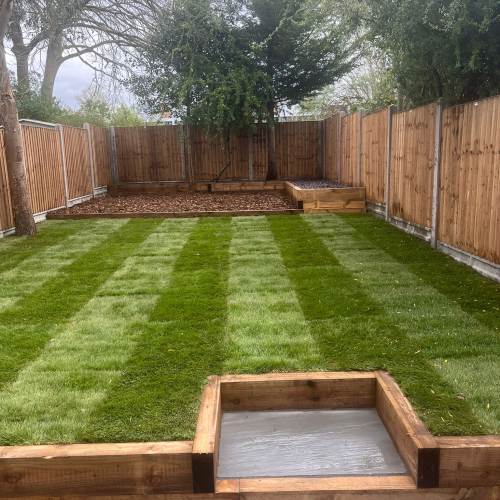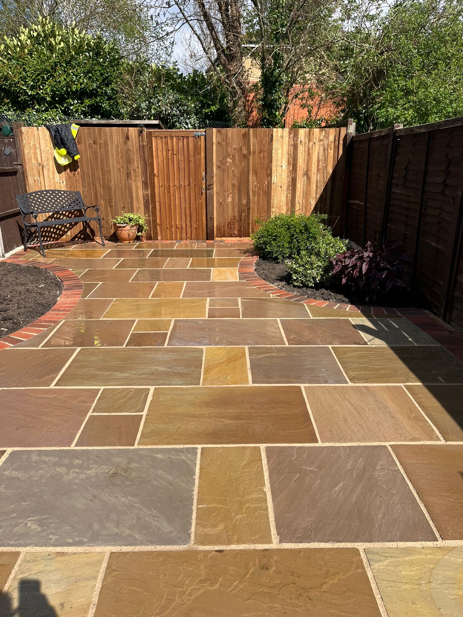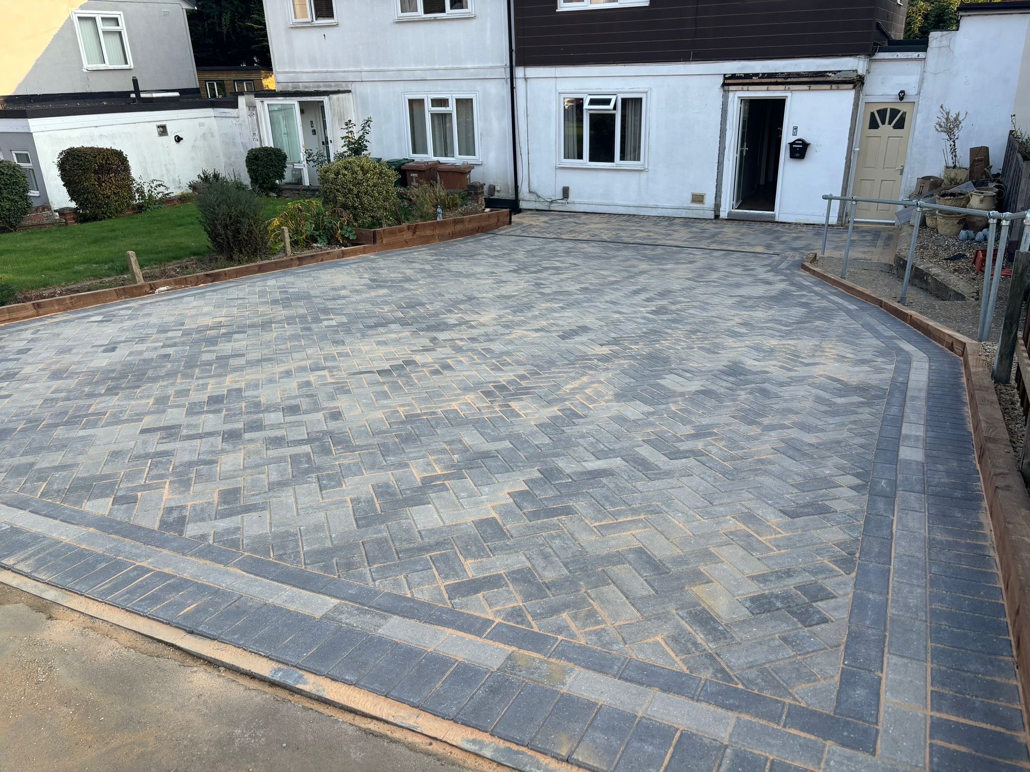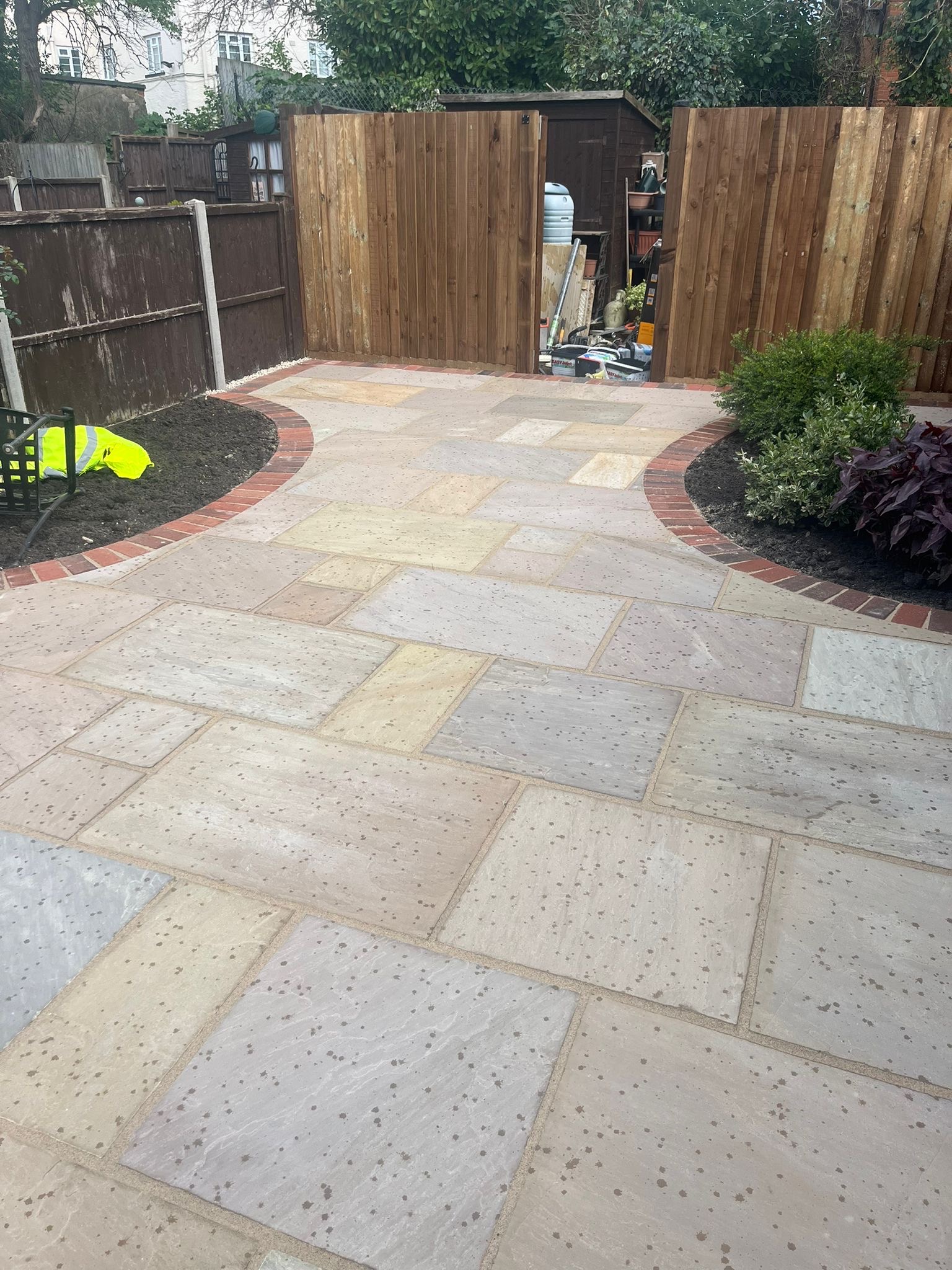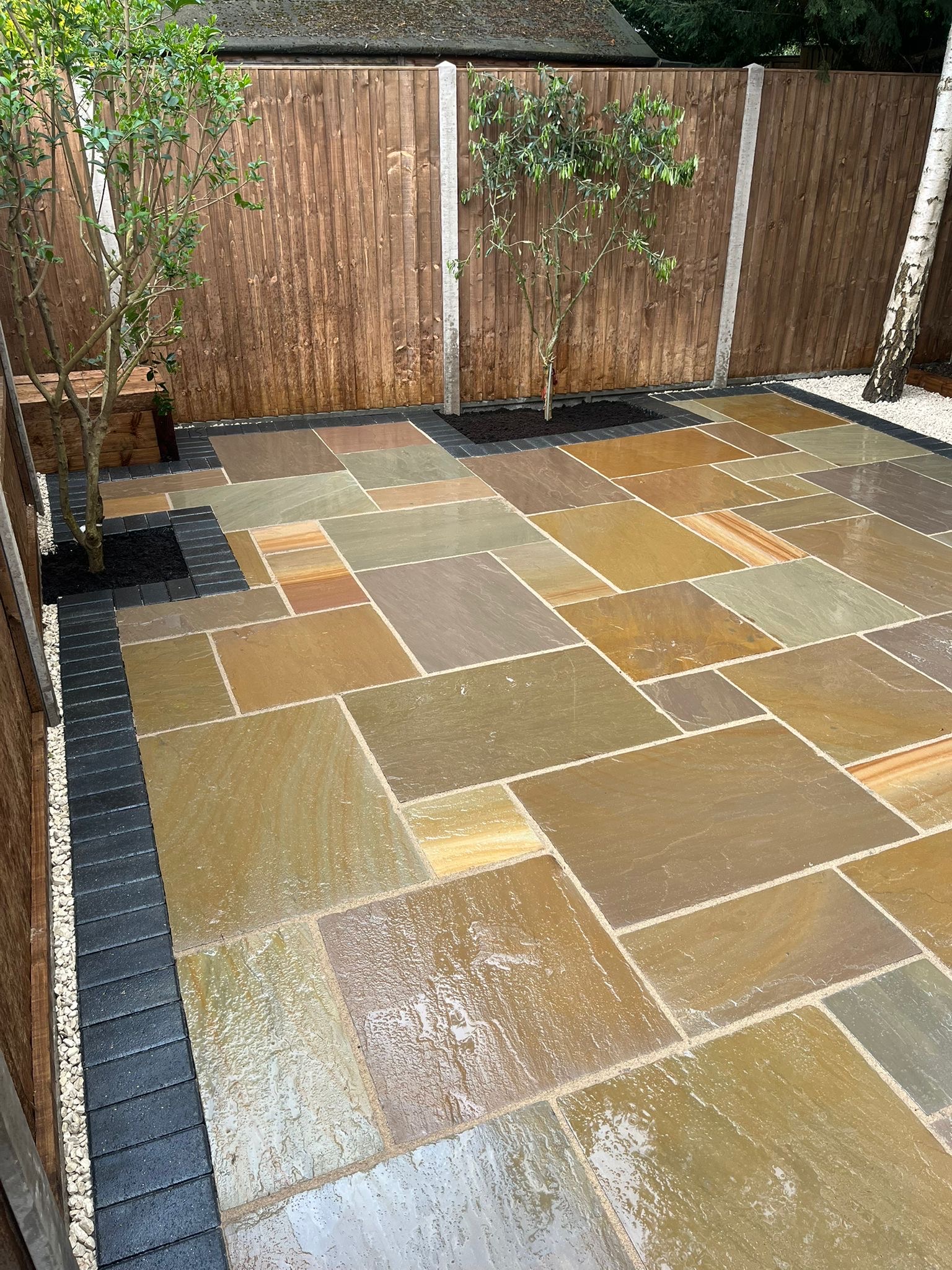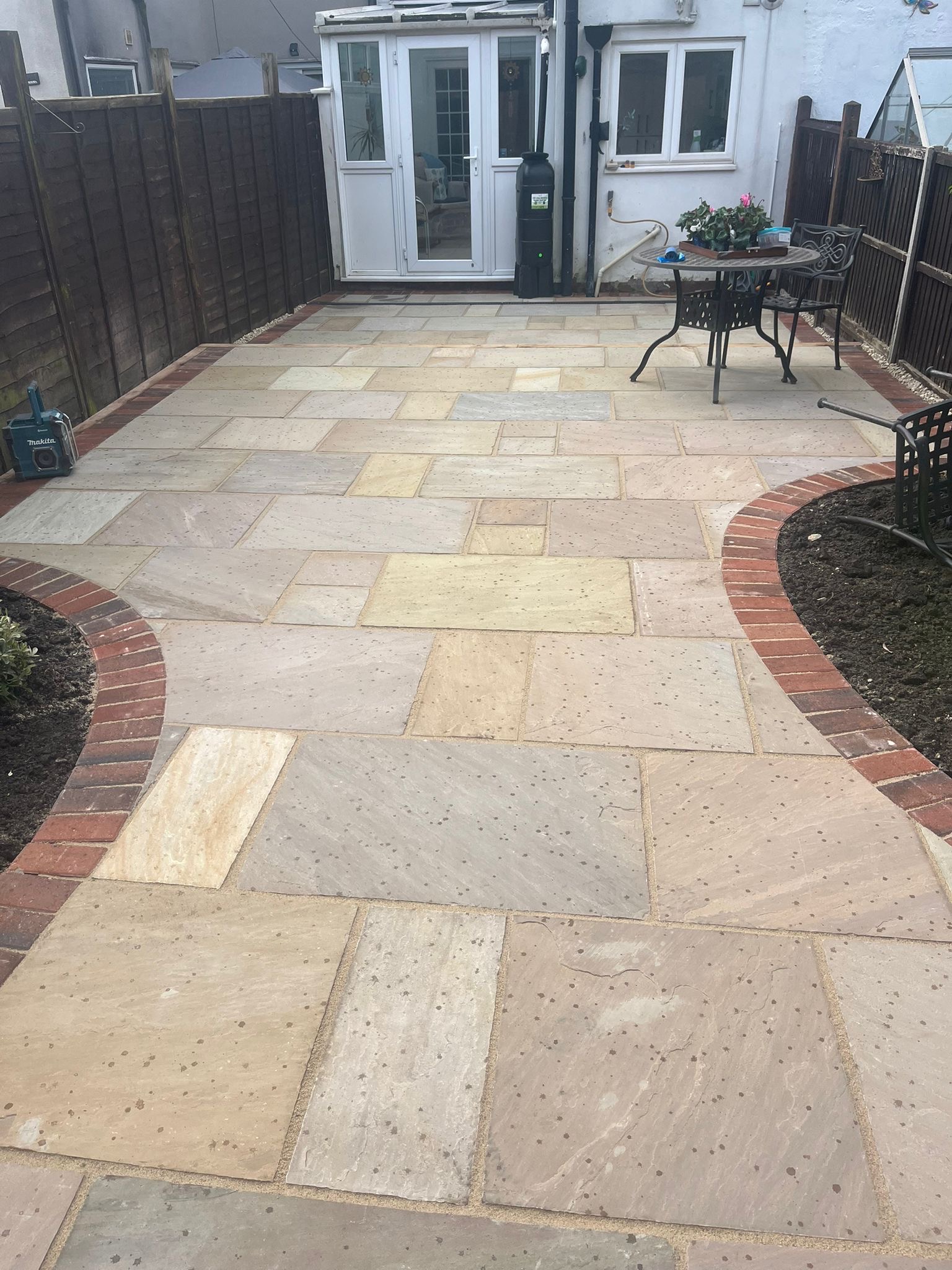 " Right from the initial quote to the snagging at the end, John Carey was professional, honest and reliable. His team (Mark, Ben and AJ) were hard-working and friendly. In a few days, my garden was transformed to look exactly how I wanted. The parking, access and the shape of my garden were all a challenge, but I was never made to feel it was too much trouble. John sorted out the level of the garden, lowering the level of the patio by the house to below the airbricks and adding drainage channels to a soakaway at the back. The sandstone pavers look great finished with Cotswold stone edging and timber sleeper raised borders. Thank you! "