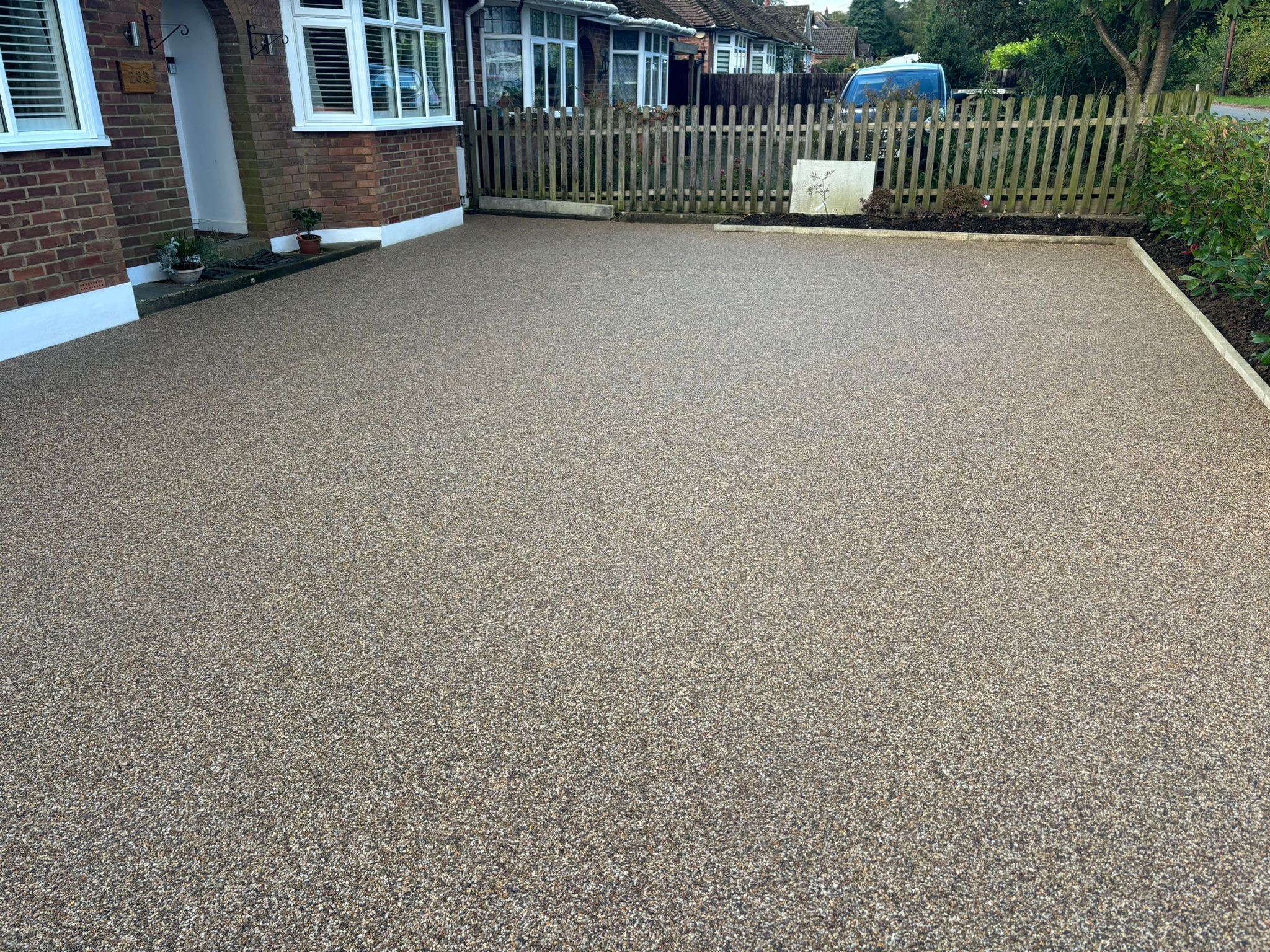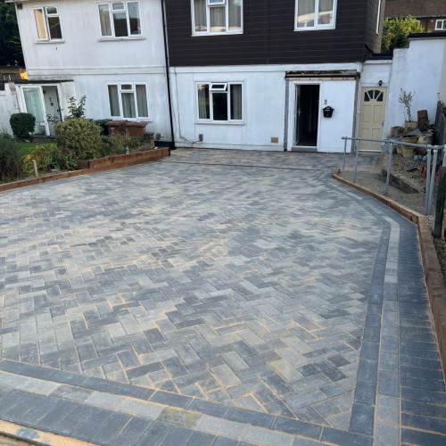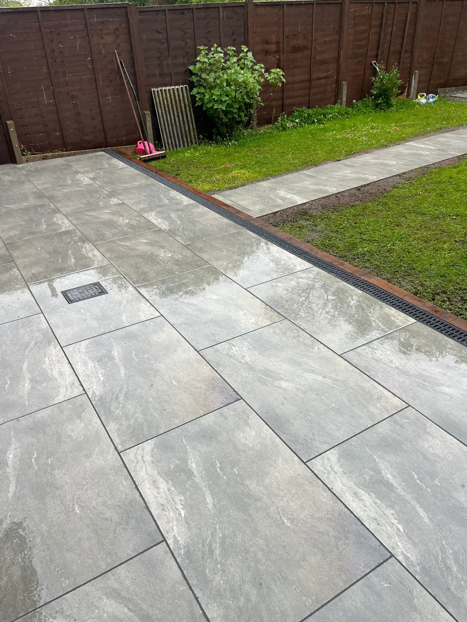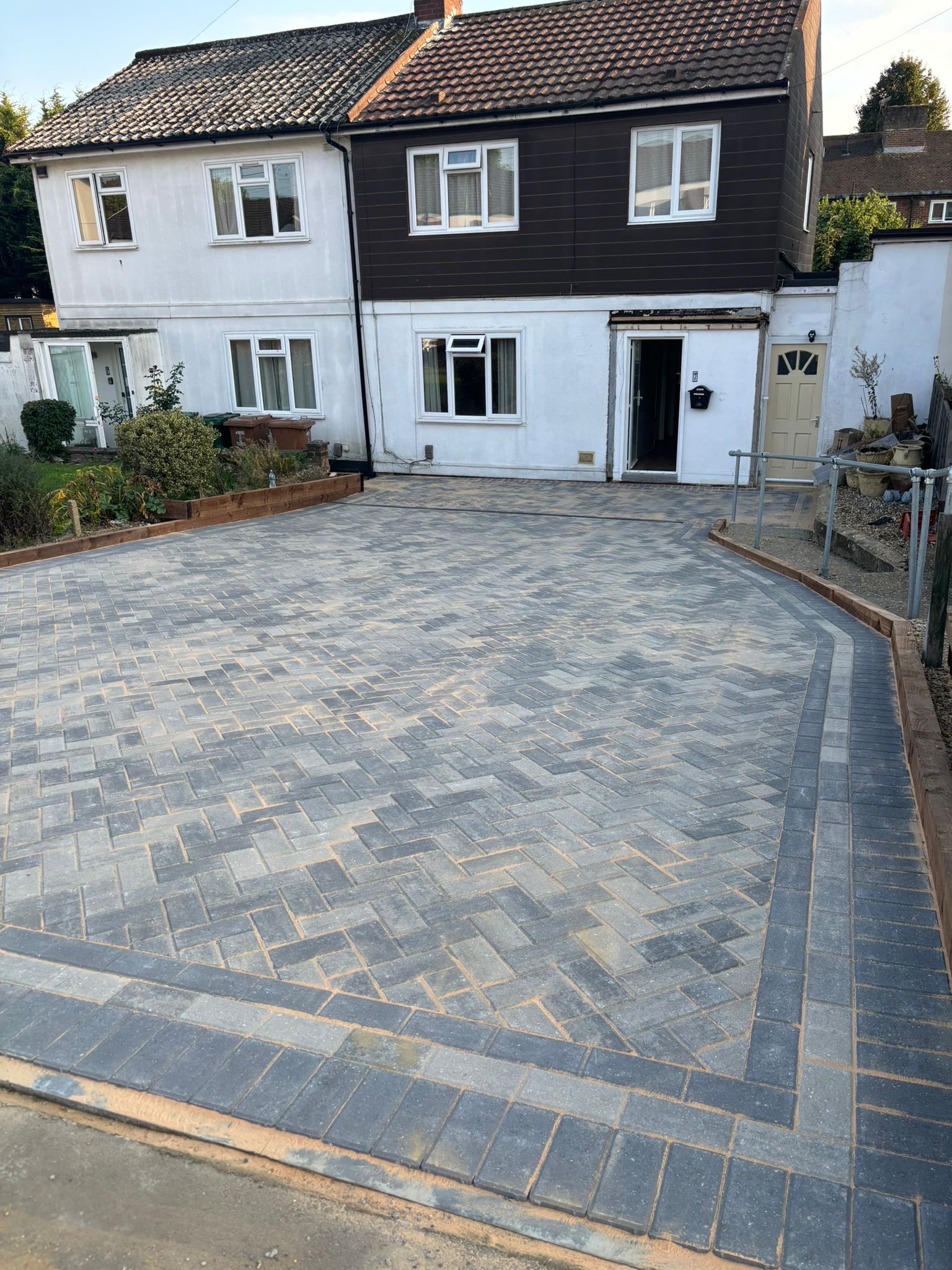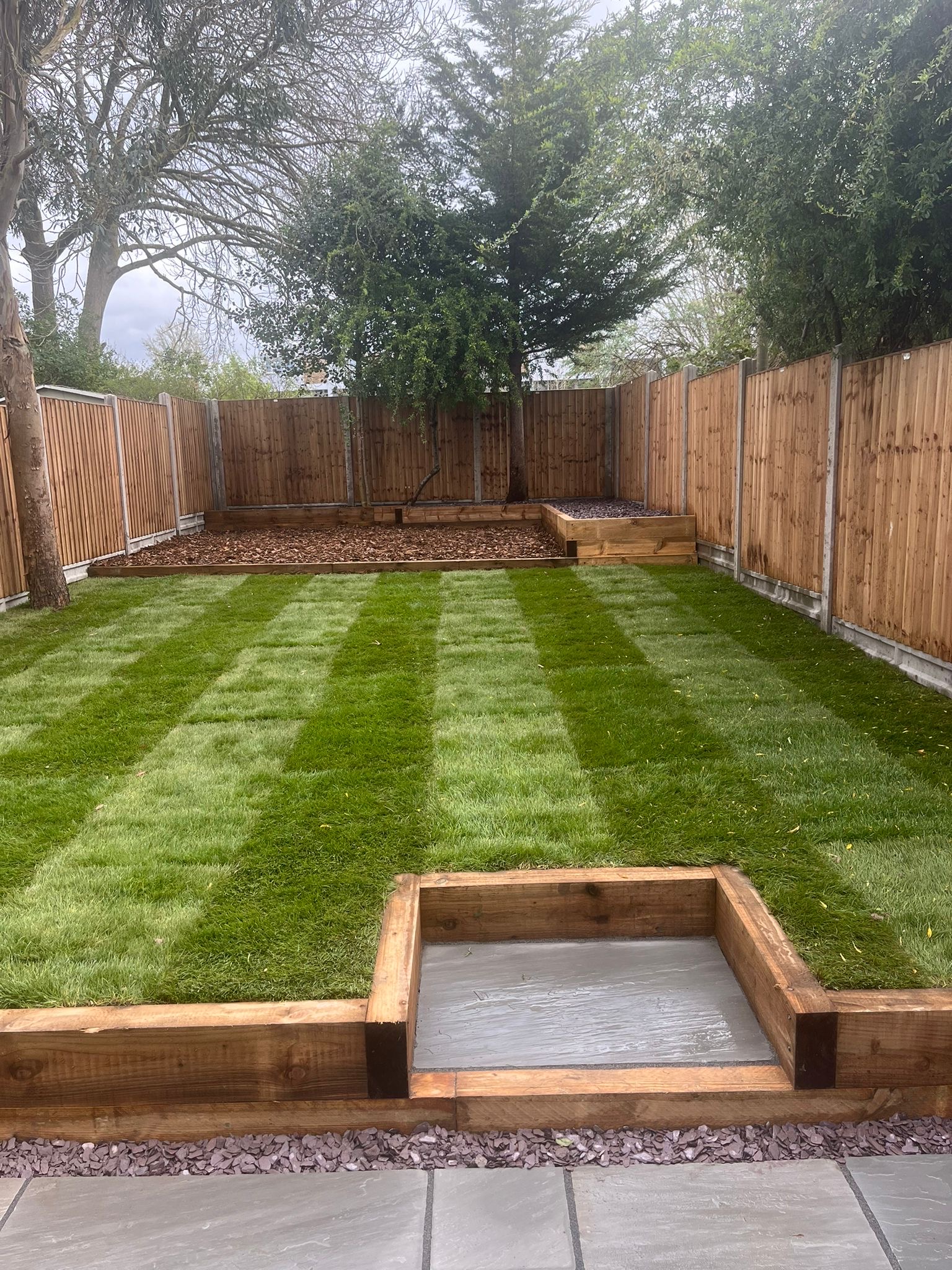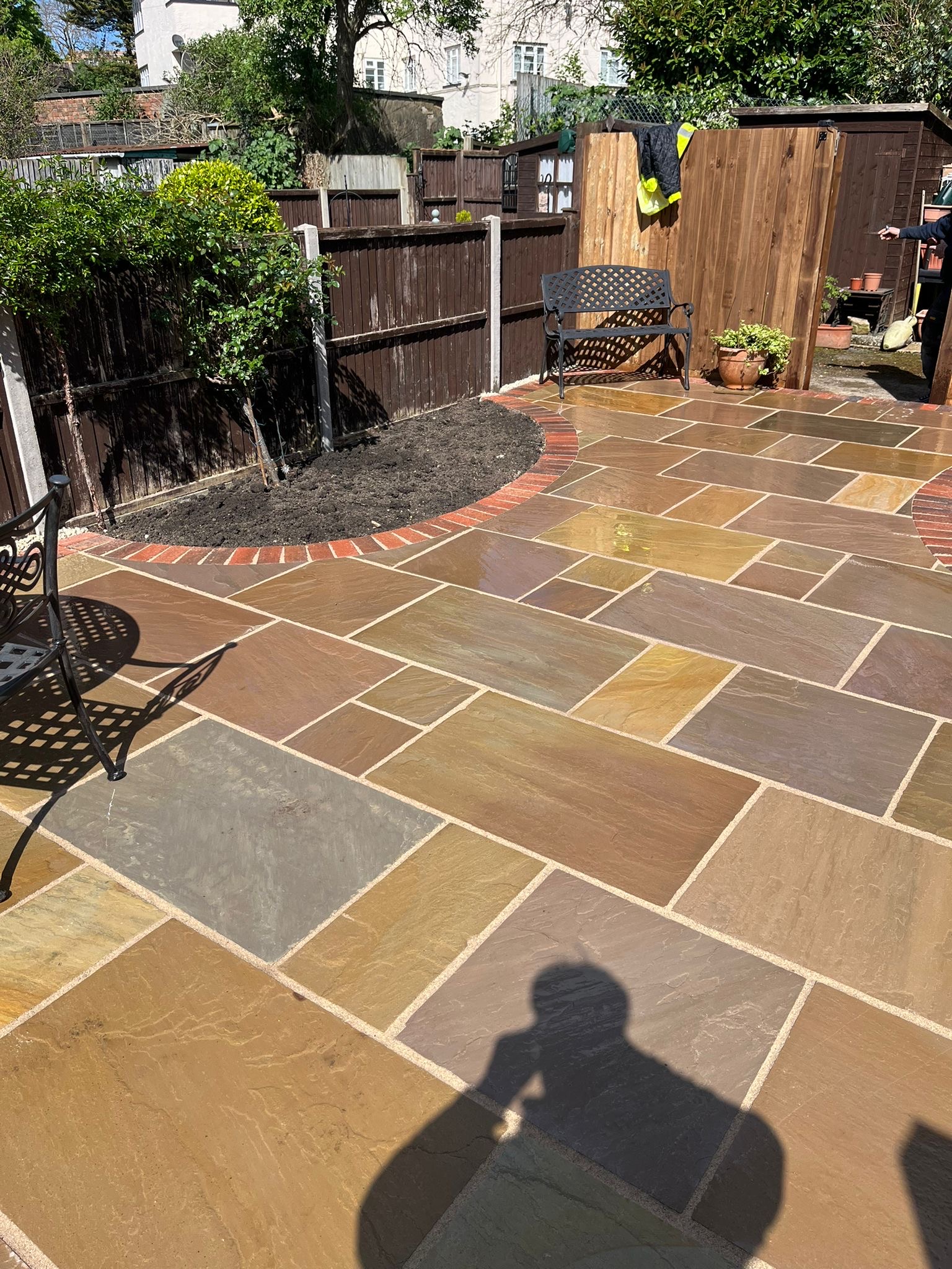 " Right from the initial quote to the snagging at the end, John Carey was professional, honest and reliable. His team (Mark, Ben and AJ) were hard-working and friendly. In a few days, my garden was transformed to look exactly how I wanted. The parking, access and the shape of my garden were all a challenge, but I was never made to feel it was too much trouble. John sorted out the level of the garden, lowering the level of the patio by the house to below the airbricks and adding drainage channels to a soakaway at the back. The sandstone pavers look great finished with Cotswold stone edging and timber sleeper raised borders. Thank you! "